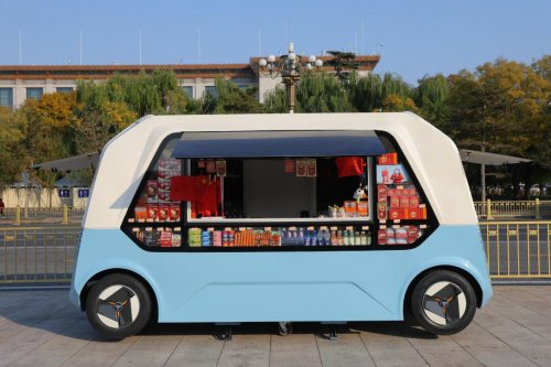 此外,欧辉还积极拓展城市服务车型,如服务于北京天安门地区的无动力便民售卖车,具备完整的售卖区、储存区与冷冻功能,支持侧翼展开与定制化布局,在满足市民便利需求的同时,也成为城市公共服务体系的重要组成部分。